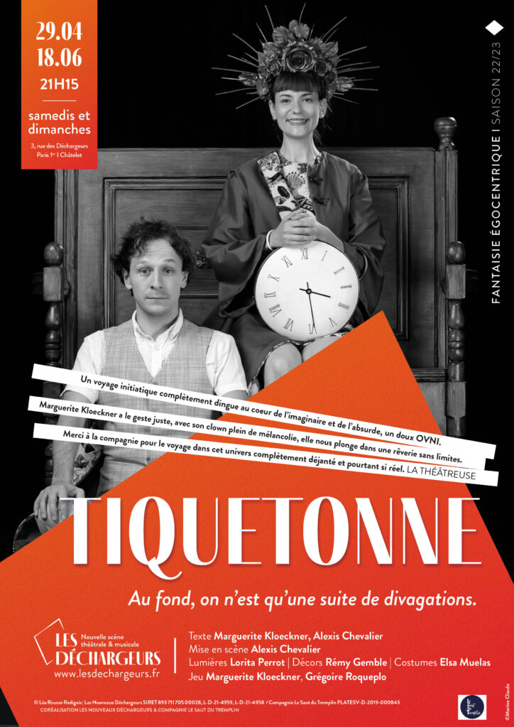 L’argument est mince, d’apparence désinvolte, mais il touche des zones profondes d’un imaginaire de verts paradis. Je serais, tu serais…C’est très vif, amusant, bien écrit, développé de manière intelligente. C’est à part. Alexis Chevalier dirige bien ses camarades. Charmeuse et idéale dans le personnage de la très narcissique Tiquetonne, Marguerite Kloeckner est éblouissante, qu’elle nous saoule de ses discours, qu’elle chante, danse, elle est d’une grâce rare. On aime beaucoup Grégoire Roqueplo qui joue ici la naïveté, la candeur, la bonté. Il est lui aussi un tempérament fort, un artiste fin et délié.